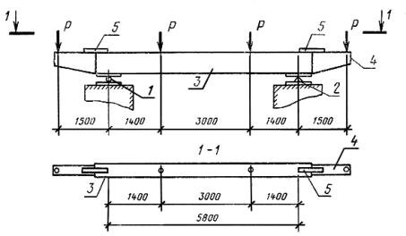 Примечания: 1. Величины контрольных нагрузок указаны без учета массы балки. 2. Величина коэффициента С принимается в зависимости от возможного характера разрушения балки согласно ГОСТ 8829-85. 3. При измерении контрольного прогиба fк в середине пролета балки консолей по схеме черт. 2 прикладывается нагрузка, равная 1/4 P. СОДЕРЖАНИЕ