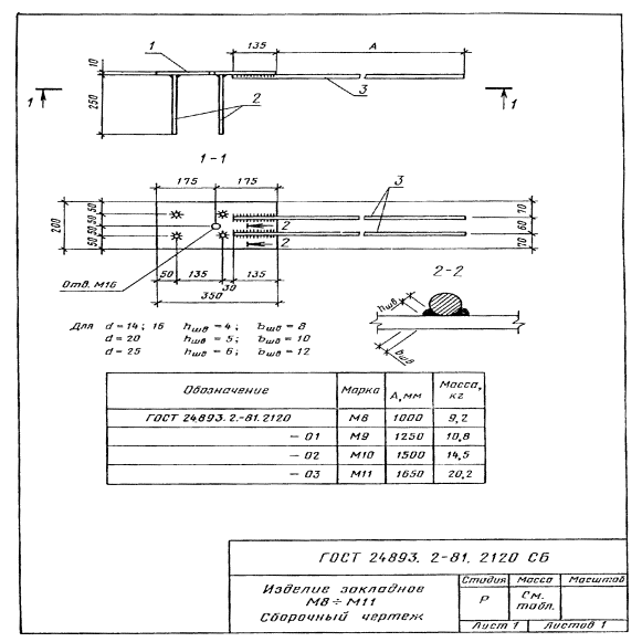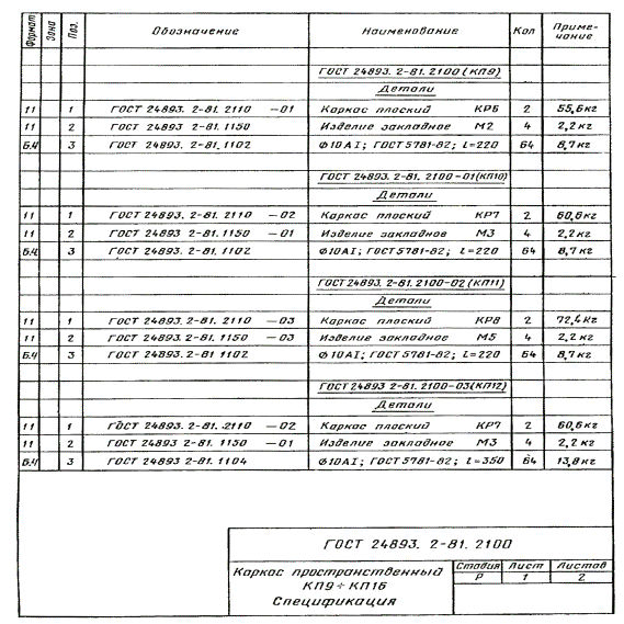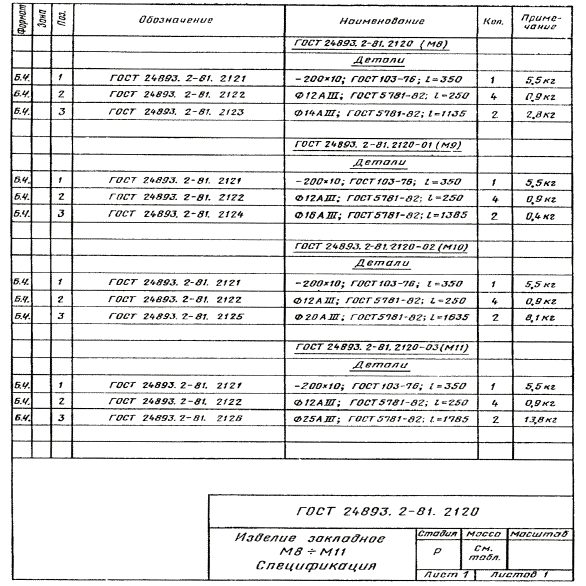 Постановлением Государственного комитета СССР по делам строительства от 14 июля 1981 г. № 119 срок введения установлен с 01.01 1983 г. 1. Настоящий стандарт распространяется на сварные арматурные и закладные изделия железобетонных обвязочных балок для зданий промышленных предприятий по ГОСТ 24893.0-81 и ГОСТ 24893.1-81. 2. Форма и размеры арматурных изделий должны соответствовать указанным на черт. 1100 СБ, 1110 СБ, 1120, 1130 ГОСТ 24893.2-81, закладных изделий - на черт. 1140, 1150 ГОСТ 24893.2-81. 3. Форма и размеры арматурных изделий, балок, предназначенных для зданий с расчетной сейсмичностью 7 - 9 баллов, должны соответствовать указанным на черт. 2100 СБ, 2110 СБ ГОСТ 24893.2-81, закладных изделий - на черт. 2120 СБ, 2130 СБ ГОСТ 24893.2-81. 4. Спецификация арматурных и закладных изделий пространственных каркасов балок - по листам 1, 2 документа 1100, балок, предназначаемых для зданий с расчетной сейсмичностью 7 - 9 баллов - по листам 1, 2 документа 2100 ГОСТ 24893.2-81. Спецификация арматурных изделий плоских каркасов приведена на черт. 1110 и 2110 ГОСТ 24893.2-81, арматурной сетки - на черт. 1120 ГОСТ 24893.2-81. 5. Дополнительные закладные изделия для балок над световыми проемами - по черт. 1160 ГОСТ 24893.2-81. 6. Технические требования - по ГОСТ 24893.0-81. 7. Изготовление арматурных изделий производить контактной точечной сваркой в соответствии с требованиями ГОСТ 14098-85 и СН 393-78. При сварке пространственных каркасов крестообразные соединения отдельных арматурных стержней со стержнями плоских каркасов допускается выполнять ручной дуговой сваркой при диаметре соединяемых стержней не менее 8 мм. 8. Закладные изделия должны изготовляться с учетом следующих требований. 8.1. Тавровые соединения анкерных стержней с пластиной следует выполнять автоматической дуговой сваркой под флюсом. 8.2. Нахлесточные соединения элементов закладных изделий М8 - M11 следует выполнять ручной дуговой сваркой швами с применением электродов типа Э42-Т или Э42А-Ф. Размеры швов должны соответствовать указанным на черт. 2120 СБ ГОСТ 24893.2-81. 8.3. При изготовлении закладных изделий балок, предназначаемых для зданий с расчетной сейсмичностью 7 - 9 баллов, особое внимание должно быть обращено на обеспечение высокого качества сварных соединений за счет строгого соблюдения технологии и параметров сварки. 9. Режимы всех видов сварки должны выбираться в соответствии с указаниями СН 393-78. 10. Испытания сварных соединений арматурных и закладных изделий, а также оценка их качества - по ГОСТ 10922-75. |