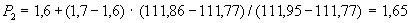 По табл. 1 определяют величины испытательных давлений, при которых среднее время распространения ультразвука по всем каналам наиболее близко к t1 % и t2 %. Линейной интерполяцией определяют P1 и Р2: