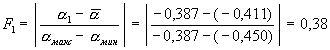 Максимальное значение aмакс = - 387, минимальное значение aмин = -0,450. Вычисляют среднее значение