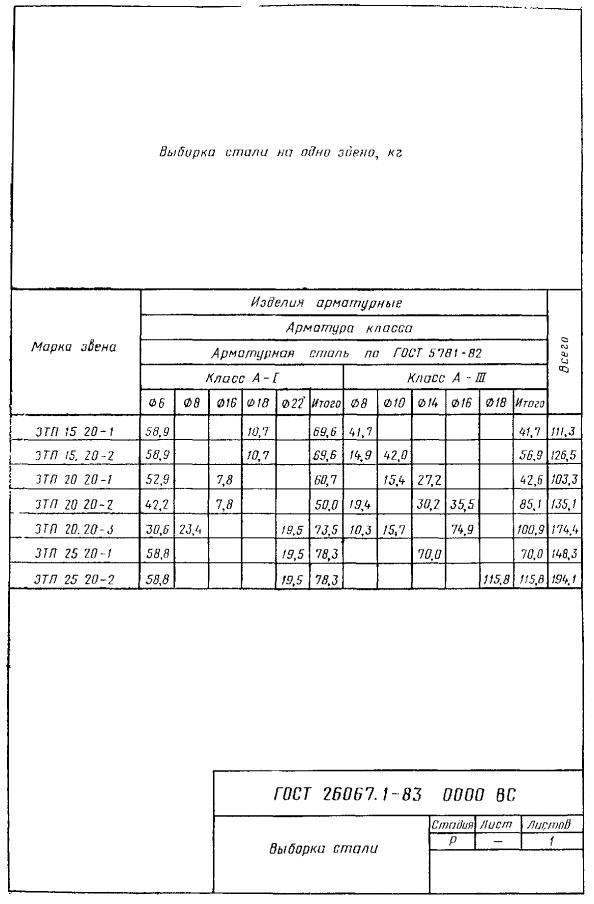 ГОСУДАРСТВЕННЫЙ СТАНДАРТ СОЮЗА ССР ЗВЕНЬЯ ЖЕЛЕЗОБЕТОННЫЕ ГОСТ 26067.1-83 ГосударственнЫЙ