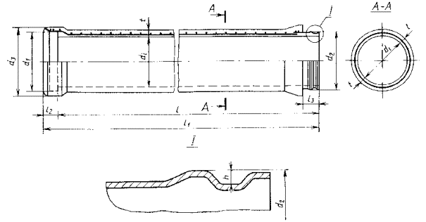 Постановлением Государственного комитета СССР по делам строительства от 29 декабря 1985 г. № 262 срок введения установлен с 01.01.87 Настоящий стандарт распространяется на железобетонные предварительно напряженные напорные раструбные трубы со стальным сердечником (типа ТНС) классов Н10 и H15 по ГОСТ 22000-86, изготовляемые из мелкозернистого бетона и предназначенные для прокладки напорных трубопроводов, по которым транспортируют жидкости температурой не выше 40 °С и с неагрессивной степенью воздействия на железобетонные конструкции и уплотняющие резиновые кольца стыковых соединений. Если транспортируемая жидкость или грунты являются агрессивными по отношению к трубам или уплотняющим резиновым кольцам, а также если трубы подвергаются воздействию блуждающих токов, то следует предусматривать их защиту от коррозии в соответствии с требованиями, установленными проектной документацией на трубопровод согласно СНиП 2.03.11-85 и СНиП 2.06.03-85. Стандарт не распространяется на водопропускные трубы, укладываемые под насыпями железных и автомобильных дорог. 1. ОСНОВНЫЕ ПАРАМЕТРЫ И РАЗМЕРЫ1.1. Форма и размеры труб, а также их показатели материалоемкости должны соответствовать указанным на чертеже и в табл. 1. 1.2. Прочностные характеристики труб класса Н10 обеспечивают работу трубопроводов под расчетным внутренним давлением 1,0 МПа (10 кгс/см2), класса Н15-1,5 МПа (15 кгс/см2) при внешних нагрузках, соответствующих усредненным условиям укладки труб по ГОСТ 22000-86. 1.3. Конструкция труб приведена в обязательном приложении 1. Стальной сердечник трубы состоит из цилиндра и приваренных к нему калиброванных соединительных колец - раструба и втулки. После нанесения методом центрифугирования внутреннего слоя бетона трубы на сердечник навивают спиральную напрягаемую арматуру, а затем методом силового набрызга наносят наружный слой бетона трубы. 1.4. Трубы обозначают марками в соответствии с требованиями ГОСТ 22000-86. Пример условного обозначения (марки) трубы типа ТНС диаметром условного прохода 300 мм, полезной длиной 5000 мм, класса Н15, с напрягаемой спиральной арматурой класса Вр-I: ТНС30.50-15ВрI Стальной сердечник трубы обозначают маркой, содержащей условное обозначение наименования сердечника (букву С), диаметр условного прохода трубы в сантиметрах и полезную длину трубы в дециметрах. Пример условного обозначения (марки) стального сердечника трубы марки ТНС30.50-15ВрI: С30.50