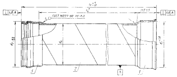 Сердечник трубы С25.50...С60.100 * Размер для справок. 1 - раструб; 2 - цилиндр; 3 - втулка Черт. 2 Таблица 2 Размеры стального сердечника Размеры в мм