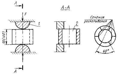 3.3. Образцы-кольца следует испытывать последовательным раскалыванием в шести радиальных сечениях по схеме, указанной на чертеже.