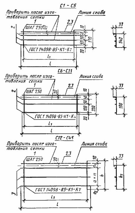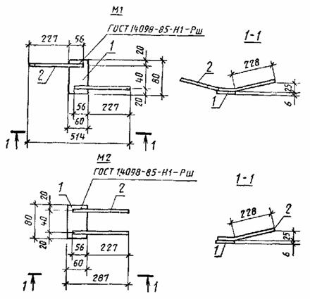 1 - сетка; 2 - закладное изделие M1; 3 - закладное изделие М2.