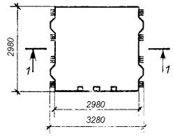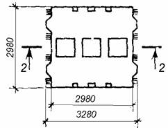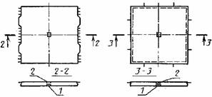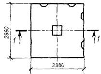 2.15. Отклонения от номинального положения стальных закладных изделий, служащих фиксаторами при монтаже, расположенных в одном и не в одном уровне с поверхностью бетона, не должны быть более 1 мм по вертикали и 2 мм по горизонтали. 2.16. Требования к качеству поверхностей и внешнему виду конструкций - по ГОСТ 13015.0-83. Категорию бетонной поверхности конструкций следует принимать: А5 - для колонн и нижних поверхностей капителей и плит; А7 - для верхних поверхностей капителей и плит. 2.17. В бетоне конструкций, поставляемых потребителю, трещины не допускаются, за исключением усадочных и других поверхностных технологических трещин, ширина которых не должна превышать 0,1 мм. 3. ПРАВИЛА ПРИЕМКИ3.1. Правила приемки конструкций - по ГОСТ 13015.1-81 и настоящему стандарту. При этом конструкции принимают: по результатам периодических испытаний - по показателям морозостойкости бетона, а также по водонепроницаемости бетона конструкций, предназначенных для эксплуатации в условиях воздействия агрессивной газообразной среды; по результатам приемо-сдаточных испытаний - по показателям прочности бетона (марке бетона по прочности на сжатие и отпускной прочности), соответствия арматурных и закладных изделий рабочим чертежам, прочности сварных соединений, точности геометрических параметров, толщины защитного слоя бетона до арматуры, ширины раскрытия трещин, категории бетонной поверхности. 3.2. Конструкции по показателям точности геометрических параметров, толщины защитного слоя бетона до арматуры, категории бетонной поверхности и ширины раскрытия технологических трещин следует принимать по результатам одноступенчатого выборочного контроля. 4. МЕТОДЫ КОНТРОЛЯ4.1. Прочность бетона на сжатие следует определять по ГОСТ 10180-78 на серии образцов, изготовленных из бетонной смеси рабочего состава и хранившихся в условиях согласно ГОСТ 18105-86. При испытании конструкций неразрушающими методами фактическую отпускную прочность бетона на сжатие следует определять ультразвуковым методом по ГОСТ 17624-78 или приборами механического действия по ГОСТ 22690.0-77 - ГОСТ 22690.4-77 и ГОСТ 21243-75. Число и места расположения участков, в которых контролируют фактическую отпускную прочность бетона на сжатие неразрушающими методами, должны соответствовать указанным на черт. 1 Колонны
