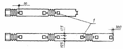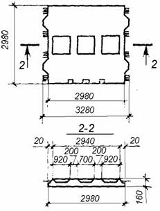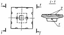 1 - участок размерами 200 ´ 200 мм для контроля фактической отпускной прочности бетона на сжатие неразрушающими методами; 2 - возможный участок испытания 4.2. Морозостойкость бетона следует определять по ГОСТ 10060-87 на серии образцов, изготовленных из бетонной смеси рабочего состава. 4.3. Водонепроницаемость бетона следует определять по ГОСТ 12730.0-78 и ГОСТ 12730.5-84 на серии образцов, изготовленных из бетонной смеси рабочего состава. 4.4. Методы контроля и испытаний сварных арматурных и закладных изделий - по ГОСТ 10922-75 и ГОСТ 23858-79. 4.5. Размеры, отклонения от прямолинейности, плоскостности и перпендикулярности поверхностей, положение стальных закладных изделий, а также качество бетонных поверхностей, ширину раскрытия усадочных трещин и внешний вид конструкций следует проверять по ГОСТ 13015-75. 4.6. Диаметр и расположение арматуры, и толщину защитного слоя бетона следует проверять по ГОСТ 17625-83, ГОСТ 22904-78 или другими неразрушающими методами, позволяющими определять положение арматуры при помощи приборов, обеспечивающих измерение толщины защитного слоя бетона с погрешностью ± 1 мм. При отсутствии необходимых приборов допускается вырубка борозд и обнажение арматуры с последующей заделкой борозд. 5. МАРКИРОВКА, ТРАНСПОРТИРОВАНИЕ И ХРАНЕНИЕ5.1. Маркировка конструкций - по ГОСТ 13015.2-81. Маркировочные надписи и знаки следует наносить на видимой (при хранении и монтаже) боковой поверхности каждой конструкции. 5.2. Требования к документу о качестве конструкций, поставляемых потребителю, - по ГОСТ 13015.3-81. 5.3. Транспортировать и хранить конструкции следует в соответствии с требованиями ГОСТ 13015.4-84 и настоящего стандарта. 5.4. Конструкции следует транспортировать и хранить в штабелях. Высота штабеля колонн не должна превышать 2,5 м. Плиты следует укладывать по высоте не более чем в 6 - 8 ярусов, капители - не более 3 шт. по высоте. 5.5. Подкладки и прокладки при транспортировании и хранении межколонных и пролетных плит следует располагать на расстоянии 250 мм от края, колонн - в местах установки стальных трубок (закладных изделий М5), предназначенных для строповки их при монтаже. 5.6. При транспортировании колонны следует укладывать на транспортные средства продольной осью по направлению движения транспорта. СОДЕРЖАНИЕ