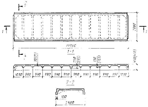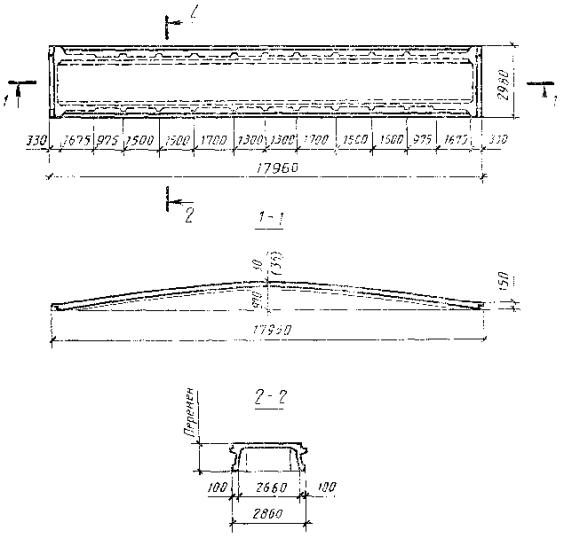 ГОСУДАРСТВЕННЫЙ СТАНДАРТ СОЮЗА ССР ПЛИТЫ ПОКРЫТИЙ ЖЕЛЕЗОБЕТОННЫЕ ТЕХНИЧЕСКИЕ УСЛОВИЯ ГОСТ 28042-89 ГОСУДАРСТВЕННЫЙ СТРОИТЕЛЬНЫЙ КОМИТЕТ СССР Москва 1. ТЕХНИЧЕСКИЕ ТРЕБОВАНИЯ1.1. Плиты следует изготовлять в соответствии с требованиями настоящего стандарта и технологической документации, утвержденной в установленном порядке, по рабочим чертежам серий 1.465.1-7/84, 1.465.1-13, 1.465.1-14, 1.465.1-15, 1.465.1-16, 1.465.1-17, ПК-01-88, 1.865.1-4/89 и 1.865.1-8. (Изменен. редакция). Допускается изготовлять плиты, отличающиеся типами и размерами от приведенных в настоящем стандарте, по техническим условиям и соответствующим рабочим чертежам, утвержденным в установленном порядке. 1.2. Основные параметры и размеры 1.2.1. Железобетонные ребристые плиты координационными размерами 1,5´6, 1,5´12, 3´6, 3´12 и 3´18 м изготовляют предварительно напряженными, а доборные ребристые и плоские - с ненапрягаемой арматурой. (Изменен. редакция). 1.2.2. Предварительно напряженные плиты подразделяют на следующие типы: ПГ - без проемов в полке плиты, с верхней плоской (горизонтальной или двускатной) поверхностью; ПОГ - то же, со сводчатой верхней поверхностью (плиты- оболочки); ПВ - с проемами в полке плиты для пропуска вентиляционных шахт с дефлекторами или зонтами, а также воздуховодов крышных вентиляторов, с верхней плоской (горизонтальной или двускатной) поверхностью; ПОВ - то же, плиты-оболочки; ПФ - с проемами в полке плиты для установки зенитных фонарей, с верхней плоской (горизонтальной или двускатной) поверхностью; ПОФ - то же, плиты-оболочки; ПС - с проемами в полке плиты для установки светоаэрационных фонарей, с верхней плоской (горизонтальной или двускатной) поверхностью; ПОС - то же, плиты-оболочки; ПЛ - с проемами в полке плиты для устройства легкосбрасываемой кровли, с верхней плоской (горизонтальной или двускатной) поверхностью; ПОЛ - то же, плиты-оболочки. 1.2.3. Плиты с ненапрягаемой арматурой изготовляют без проемов в полке и подразделяют на следующие типы: ПР - ребристые; ПП - плоские. 1.2.4. форма и основные размеры плит должны соответствовать приведенным в приложении. 1.2.5. Показатели расхода бетона и стали на плиты должны соответствовать указанным в рабочих чертежах или стандартах на эти плиты. 1.2.6. В случаях, предусмотренных проектом здания, плиты могут иметь дополнительные отверстия, вырезы в полках, углубления па наружных гранях продольных ребер для устройства бетонных шпонок между смежными плитами, а также дополнительные закладные изделия. 1.2.7. Плиты обозначают марками в соответствии с требованиями ГОСТ 23009. Марка плиты состоит из буквенно-цифровых групп, разделенных дефисами. В первой группе указывают обозначение типоразмера плиты. Во второй группе указывают порядковый номер плиты по несущей способности, класс напрягаемой арматуры (для предварительно напряженных плит), вид бетона (для плит, изготовляемых из легкого бетона). В третью группу, при необходимости, включают дополнительные характеристики, отражающие особые условия применения плит: их стойкость к воздействию агрессивной среды, сейсмическим и другим воздействиям, а также обозначения конструктивных особенностей плит (наличие, размеры и расположение проемов, наличие дополнительных закладных изделий и др.). Пример условного обозначения (марки) плиты типоразмера 3ПГ6, второй по несущей способности, с напрягаемой арматурной сталью класса 