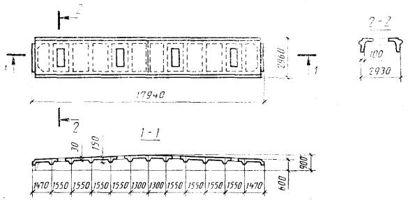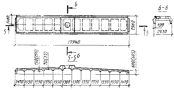 Плита типоразмера 1ПВ18 с проемом, расположенным в средней части плиты