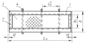 Площадки ______________ * По чертежам КМД. 1 - балка; 2 - окантовочный элемент; 3 - настил; 4 - ребро Черт. 2 Таблица 2 мм