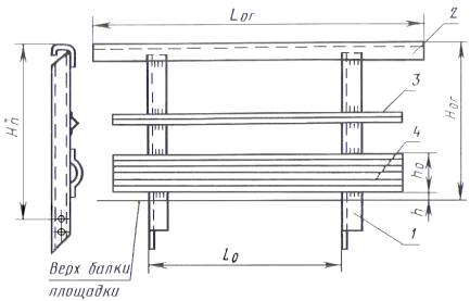 Ограждение площадок ____________ * По чертежам КМД. 1 - стойка; 2 - поручень, 3 - средний ограждающий элемент; 4 - бортовой элемент Черт. 4 Таблица 4 мм
