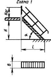 Нэ - высота этажа или расстояние между перекрытиями; H, L, B, Lп, Hor - номинальные размеры элементов лестниц; a - угол наклона лестниц; b - ширина ступени; h - высота ступени