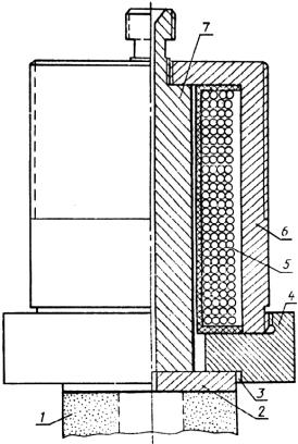 Постановлением Государственного комитета СССР по делам строительства от 29 декабря 1985 г. № 265 срок введения установлен с 01.01.87 Несоблюдение стандарта преследуется по закону Настоящий стандарт распространяется на легкие ограждающие слоистые панели с утеплителем из пенопластов, предназначенные для стен и покрытий зданий, и устанавливает метод определения модулей упругости и сдвига пенопласта на автоматизированном измерительном приборе АИК-1. Применение указанного метода должно предусматриваться в нормативно-технических документах, устанавливающих технические требования к панелям с утеплителем из пенопластов. Термины, обозначения и пояснения, применяемые в настоящем стандарте, приведены в справочном приложении 1. 1. ОБЩИЕ ПОЛОЖЕНИЯ1.1. Метод определения модулей упругости (Е) и сдвига (G) заключается в возбуждении в образце пенопласта продольных или крутильных затухающих колебаний и получении указанных характеристик и периода колебаний (Т) на дисплее ЭВМ прибора АИК-1. Принципиальная схема и общий вид прибора приведены на черт. 1 и 2. 1.2. На приборе может быть измерен логарифмический декремент затухания (D) для косвенной оценки долговечности панелей ускоренным методом. 1.3. Образцы для испытаний вырезают из пенопластового слоя панелей в заданном (продольном или поперечном) направлении, предварительно удалив металлические листы. 1 - образец; 2 - электромагниты; 3 - блок формирования одиночного импульса; 4 - блок измерения модулей Е и G; 5 - блок измерения логарифмического декремента затухания; 6 - блок отображения информации с дисплеем; 7 - блок измерения температуры с дисплеем; 8 - блок электронного регулирования температуры. Черт. 1 1.4. Модули упругости и сдвига определяют при напряжении, не вызывающем механических повреждений образца и составляющем не более 20 % от прочности пенопласта. 1.5. Число образцов для испытания устанавливают исходя из коэффициента вариации 15 % и доверительной вероятности 95 %. 2. МЕТОД ОТБОРА ОБРАЗЦОВ2.1. Образцы для испытаний отбирают по схемам, приведенным в ГОСТ 23486-79, ГОСТ 24524-80, ГОСТ 24581-81. 2.2. Образцы для испытания должны иметь форму полого цилиндра с наружным диаметром 75 мм, внутренним диаметром 35 мм и высотой, равной толщине пенопластового слоя панели, но не менее 45 мм. Предельные отклонения размеров образцов не должны быть более ± 1 мм по наружному и внутреннему диаметрам, ± 1 мм - по высоте. 2.3. Образцы не должны иметь недовспененных полостей площадью более 0,2 см2. В образцах не допускаются трещины, раковины, вмятины. 2.4. На образцы должны быть нанесены обозначения марки панели и направление оси образца по отношению к плоскости панелей. 3. АППАРАТУРАПрибор АИК-1 (черт. 2). Весы по ГОСТ 24104-80. Штангенциркуль по ГОСТ 166-80. Линейка по ГОСТ 427-75. Общий вид прибора АИК-1 Черт. 2 4. ПОДГОТОВКА К ИСПЫТАНИЮ4.1. Перед испытанием образцы измеряют с погрешностью 0,1 мм, взвешивают с погрешностью 0,01 г и определяют их плотность по ГОСТ 409-77. Массу металлической пластины образца, к которой крепят пьезокерамический датчик, определяют с погрешностью 0,01 г. 4.2. К торцам образцов приклеивают эпоксидным компаундом металлические пластины (черт. 3). Образец с металлическими пластинами 1 - металлические пластины; 2 - образец Черт. 3 4.3. Образцы до испытания выдерживают в течение 24 ч при температуре (20 ± 5) °С и относительной влажности воздуха (65 ± 5) %. 5. ПРОВЕД