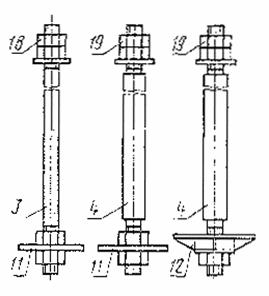 3. Болты с анкерной плитой исполнений 1-3 устанавливаются до бетонирования фундаментов (примеры 3, 4 и 5).