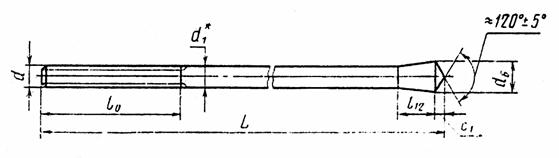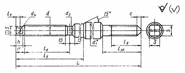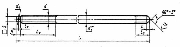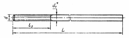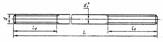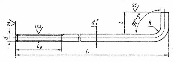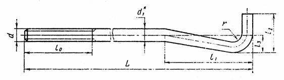 Размеры для справок. 1-10 - шпилька; 11, 12 - плита анкерная; 13 - муфта; 14 - анкерная арматура; 15 - цанга разжимная; 16 - втулка коническая; 17 - шайба; 18 - гайка по ГОСТ 5915-70; 19 - гайка по ГОСТ 10605-72 1.2. Длина болтов L и диаметр резьбы d назначаются в зависимости от длины шпилек и диаметра их резьбы. Пример условного обозначения болта типа 1, исполнения 1, диаметром резьбы d = 20 мм, длиной L = 800 мм, со шпилькой из стали марки ВСт3пс2: БОЛТ 1.1.М20´800. ВСт3пс2 ГОСТ 24379.1-80 То же, болта типа 4, исполнения 2, диаметром резьбы d = 100 мм, с мелким шагом резьбы 6 мм, длиной L = 1900 мм, со шпилькой из стали марки 09Г2С-6: БОЛТ 4.2.М100´6´1900 09Г2С-6 ГОСТ 24379.1-80 1.3. Общие технические условия - по ГОСТ 24379.0-80. 1.4. Теоретическая масса болтов в сборе типов 1, 2, 5 и 6 дана в справочном приложении 1. Теоретическая масса болтов типов 3 и 4 указывается в рабочих чертежах. 1.5. Примеры установки болтов в фундаменты приведены в рекомендуемом приложении 4. 2. КОНСТРУКЦИЯ И РАЗМЕРЫ ШПИЛЕК2.1. Конструкция и размеры шпилек должны соответствовать указанным на черт. 2 и в табл. 2. ШПИЛЬКИ (поз. 1-10 по черт. 1) Поз. 1 (d = 12-48 мм)