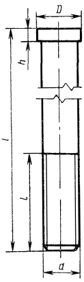 1 - болт; 2 - ЗЭ; 3 - шайба; 4 - гайка При технико-экономическом обосновании допускается изменение длины болтов и ЗЭ. Пример условного обозначения самоанкерующегося распорного болта диаметром резьбы d = 8 мм, длиной L = 85 мм исполнения У3: БСР 8´85 У3 ГОСТ 28778-90 1.4. Конструкция и размеры болта, входящего в состав БСР, должны соответствовать указанным на черт. 2 и в табл. 2. 1.5. Увеличение длины L допускается при соответствующем увеличении длины резьбы l, указанной в табл. 2. 1.6 Требования к стержню и резьбе болта должны соответствовать ГОСТ 1759.0, ГОСТ 1759.1, ГОСТ 1759.4. 1.7. Поле допуска резьбы - 6g или 8g по ГОСТ 16093. 1.8. Остальные требования не нормируются. Болт Таблица 2 Размеры, мм