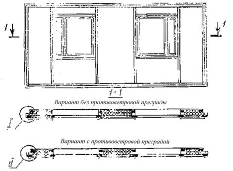 панелей должна быть ( 2.2.7. Для каркасов необходимо использовать обрезные бруски прямоугольного сечения, остроганные в соответствии с рабочими чертежами с двух или четырех сторон. Отклонения от проектных размеров строганных брусков не должны превышать по ширине ±1 мм, по толщине ±0,5 мм. 2.2.8. Бруски должны быть цельными по длине элементов каркаса. Допускается зубчатое клеевое соединение (I группы) брусков в соответствии с требованиями ГОСТ 19414-79. 2.2.9. Бруски после острожки должны быть антисептированы. Для антисептирования следует применять водорастворимые препараты - кремнийфтористый аммоний (КФА) по отраслевому стандарту, утвержденному в установленном порядке, препарат ХМБ-444, тетрафторборат аммония (ТФБА) по техническим условиям, утвержденным в установленном порядке, или препарат ББ по ГОСТ 23787.6-79. Концентрация препаратов КФА, ТФБА и ХМБ-444 должна составлять 15 %, а препарата ББ - 20 %. Пропитку брусков следует производить по ГОСТ 20022.9-76 нанесением на поверхность. 2.2.10. В качестве утеплителя панелей следует применять полужесткие или жесткие минераловатные плиты на синтетическом связующем, удовлетворяющие требованиям ГОСТ 9573-72, а также минераловатные прошивные маты марок 100, 125 типа 4М, удовлетворяющие требованиям ГОСТ 21880-76. Влажность плит не должна превышать 1 % по массе, прошивных матов - 2 % по массе. Допускается применять в качестве утеплителя полужесткие или жесткие плиты из стеклянного штапельного волокна соответственно марок ППС-75 и ПЖС-175, удовлетворяющие требованиям ГОСТ 10499-78. В панелях высшей категории качества должен применяться утеплитель, обернутый в полиэтиленовую пленку. 2.3. Требования к конструкции панели 2.3.1. Панели состоят из деревянного каркаса, обшитого с двух сторон на глухих участках плоскими асбестоцементными листами и несгораемого или трудносгораемого утеплителя. При применении панелей в районах со средней расчетной температурой наиболее холодных суток минус 30 °С и ниже они должны иметь противоветровую преграду из асбестоцементных или асбесто-бумажно-цементных листов толщиной 4-6 мм, примыкающую к утеплителю с наружной стороны (рекомендуемое приложение 1). 2.3.2. Элементы деревянного каркаса панели в зависимости от конструктивного решения могут быть сплошного или составного сечения (рекомендуемое приложение 2). 2.3.3. На глухих участках панели расстояние между стойками каркаса, служащими опорой для листов обшивки, не должно превышать 600 мм. 2.3.4. Вертикальные и горизонтальные рабочие бруски каркаса из пересечениях следует соединять клеем и некорродирующими шурупами с потайной головкой по ГОСТ 1145-80. Шурупы следует устанавливать в предварительно рассверленные в одном из брусков отверстия. Для склеивания можно применять следующие водостойкие синтетические клеи, разрешенные к применению Главным санитарно-эпидемиологическим управлением Министерства здравоохранения СССР: фенолоформальдегидный клей КБ-3 по ГОСТ 20907-75 и ОСТ 38-01-116-76, фенолорезорциновые клеи ФР-12, ФРФ-50 я ФРФ-100 по техническим условиям, утвержденным в установленном порядке. 2.3.5. В каркасах угловые соединения рабочих брусков должны бить дополнительно укреплены угловыми накладками из стальной полосы по ГОСТ103-76, прикрепляемыми шурупами с потайной головкой. Отверстия для шурупов следует выполнять с раззенковкой. Подкладные бруски необходимо соеди