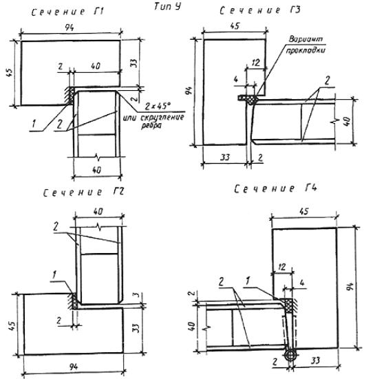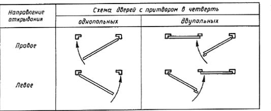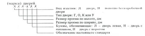 Пример условного обозначения двери остекленной однопольной для проема высотой 21 и шириной 10 дм, правой, с порогом: ДО 21-10П ГОСТ 6629-88 То же, глухой двупольной для проема высотой 24 и шириной 15 дм, левой, с порогом: ДГ 24-15ЛП ГОСТ 6629-88 То же, с качающимися полотнами для проема высотой 24 и шириной 19 дм: ДК 24-19 ГОСТ 6629-88 То же, усиленной, со сплошным заполнением полотна, для проема высотой 21 и шириной 9 дм, правой: ДУ 21-9 ГОСТ 6629-88 То же, полотно бескоробочной двери типа Г, однопольной для проема высотой 20 и шириной 7 дм, левой, с наплавом: ПГ 20-7ЛН ГОСТ 6629-88 2. КОНСТРУКЦИЯ2.1. Двери должны изготовляться в соответствии с требованиями ГОСТ 475, настоящего стандарта и по рабочим чертежам, утвержденным в установленном порядке. 2.2. Конструкция, форма и типоразмеры дверей должны соответствовать указанным на черт. 2, а размеры сечений - на черт. 3. 2.3. Полотна дверей типа У должны изготовляться со сплошным заполнением щита калиброванными по толщине деревянными рейками или ДСП, а также с применением калиброванных по ширине полос ДСП, уложенных на ребро. Примеры заполнения щитов дверных полотен приведены в приложении 2. 2.4. Вертикальные бруски рамки полотна двери типа У должны иметь ширину не менее 90 мм. Допускается прорезать бруски по длине с обеих сторон. Глубина прорезей 5 - 6 мм, ширина 3 - 4 мм. Допускается применение брусков шириной 45 - 60 мм, склеенных по боковой поверхности. Горизонтальные бруски рамки должны иметь ширину не менее 45 мм и соединяться в углах с вертикальными на клею в шип или на шкантах, скобах, скрепах. 2.5. Двери облицовывают материалами в соответствии с ГОСТ 475 в части, относящейся к дверям нормальной влагостойкости. 2.6. Двери, применяемые для комплектации санитарно-технических кабин, допускается изготовлять с полотном толщиной 30 мм и высотой не менее 1800 мм, с шириной бруска коробки не менее 50 мм. 2.7. Двери типов О и К допускается изготовлять рамочной конструкции с шириной брусков рамки не менее 100 мм. 2.8. На нижней части полотен дверей типа У общественных зданий по требованию потребителя крепят с обеих сторон накладки из декоративного бумажнослоистого пластика толщиной 1,3 - 2,5 мм по ГОСТ 9590, сверхтвердых ДВП толщиной 3,2 - 4 мм по ГОСТ 4598, листового алюминия или окрашенной тонколистовой стали. Ширина накладок 220 мм. 2.9. Коробку без порога расшивают внизу монтажной доской с креплением гвоздями или шиповыми соединениями к торцам вертикальных брусков. 2.10. В дверях типов О и К общественных зданий устанавливают с двух сторон защитные ограждения, примеры которых приведены в приложении 3. 2.11. Двери типа У и бескоробочные двери типов Г и О должны быть укомплектованы уплотняющими прокладками по ГОСТ 10174 или др., обеспечивающими необходимую герметичность притворов. 2.12. Расположение приборов приведено в приложении 4. Двери должны поставляться с выбранными гнездами под корпуса замков (защелок) и отверстиями под ручки. Полотна для бескоробочных дверей должны поставляться с установленными верхними полупетлями, нижние полупетли должны упаковываться и поставляться в комплекте. 2.13. Варианты установки бескоробочных дверей приведены в приложении 5. Варианты коробок с облицовкой из поливинилхлорида для дверей типов Г, О без порога приведены в приложении 6. Схемы определения левых и правых дверей приведены в приложении 7. Спецификация стекол для дверей приведена в приложен