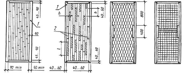3. При облицовке щитов дверей типа Г плитами ДВП толщиной 3,2 мм ширина просвета между элементами мелкопустотного заполнения не должна превышать 30 мм, а длина - 200 мм.