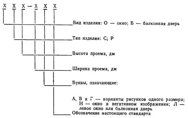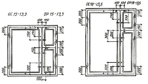 Постановлением Государственного комитета СССР по делам строительства от 14 ноября 1985 г. № 191 срок введения установлен с 01.01.87 Настоящий стандарт распространяется на деревянные окна и балконные двери с двойным остеклением, предназначаемые для жилых и общественных зданий, а также для вспомогательных зданий и помещений предприятий различных отраслей народного хозяйства. 1. ТИПЫ, РАЗМЕРЫ И МАРКИ1.1. Окна и балконные двери, изготовляемые по настоящему стандарту, подразделяют на типы: С - со спаренными створками и дверными полотнами; Р - с раздельными створками и дверными полотнами. 1.2. Габаритные размеры окон, балконных дверей и размеры проемов для них должны соответствовать: для жилых зданий - указанным на черт. 1 и в приложении 1; для общественных зданий - указанным на черт. 2 и в приложении 2. Окна и балконные двери, приведенные на черт. 1, допускается применять и для общественных зданий. 1.3. Окна размерами 9-13,5; 12-13,5; 15-13,5; 18-13,5 и 21-13,5 модулей (модуль М-100 мм) для заполнения проемов в стенах из немодульного кирпича лицевой кладки по требованию потребителя допускается изготовлять шириной на 80 мм больше указанных, за счет увеличения широких створок, а окно размерами 15-6 модулей - шириной на 70 мм меньше указанного, при этом маркировку изменяют соответственно на 9-14; 12-14; 15-14; 18-14; 21-14 и 15-5. 1.4. Для жилых зданий, возводимых в IV климатическом районе, допускается применять окна с узкой створкой (без форточки). 1.5. По требованию потребителей одностворные окна и балконные двери, в т.ч. с форточными створками и фрамугами, должны изготовляться также и левыми, а окна многостворные с несимметричным рисунком - в негативном изображении. 1.6. Устанавливают следующую структуру условного обозначения (марки) окон и балконных дверей: