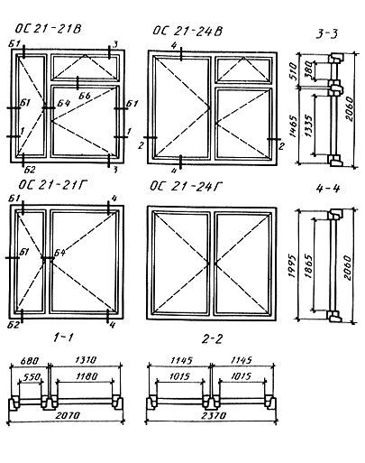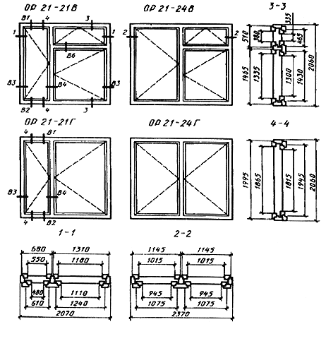 Черт. 24 Примечание: Высоту внутренних подфорточных створок допускается увеличивать на 5 мм за счет соответствующего уменьшения высоты форточных створок.