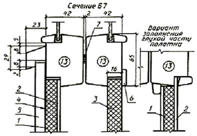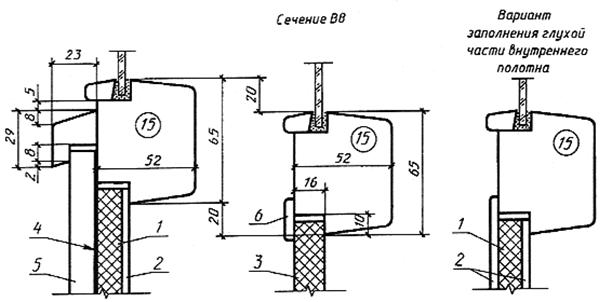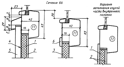 Черт. 49 Примечание. Заполнение полотен и вариант заполнения глухой части внутреннего полотна см. черт. 50.