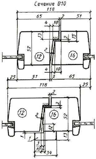 Черт. 11 Сечения по притворам окон и балконных дверей жилых и общественных зданий