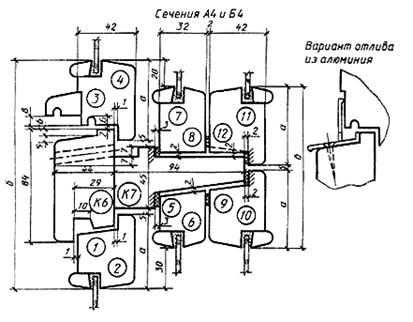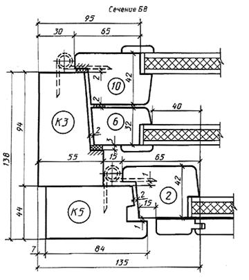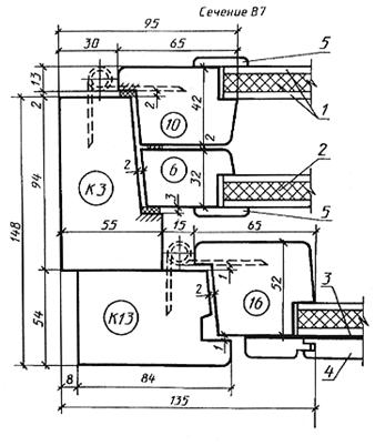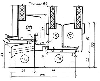 Черт. 6 Сечения по притворам окон и балконных дверей жилых зданий