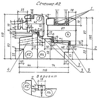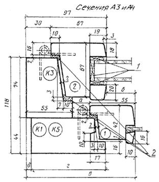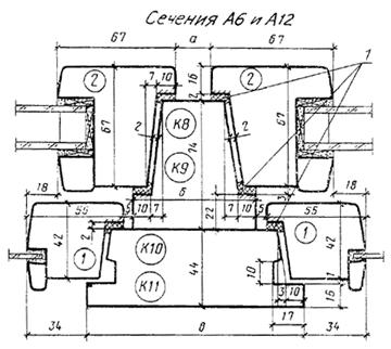 1 — опорные, распорные и боковые прокладки; 2 ¾ уплотняющие прокладки по ГОСТ 10174