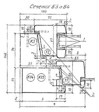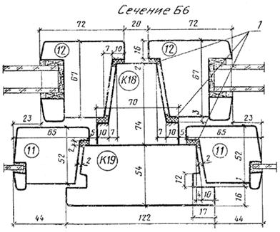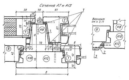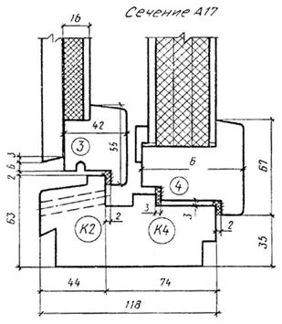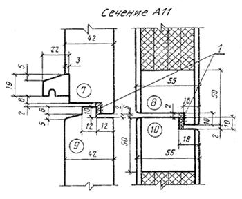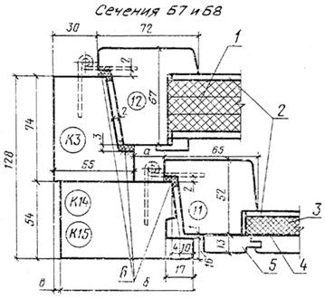Черт. 5 Сечения по притворам окон и балконных дверей жилых зданий