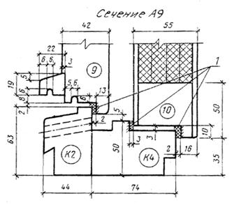 1 — уплотняющие прокладки по ГОСТ 10174 Черт. 10