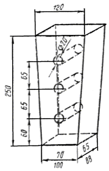 Постановлением Государственного комитета Совета Министров СССР по делам строительства от 27 декабря 1974 г. № 253 срок введения установлен с 01.01 1976 г. Несоблюдение стандарта преследуется по закону Настоящий стандарт распространяется на глиняный кирпич пластического прессования, изготовляемый из глин с добавками или без них и обожженный, предназначенный для кладки кирпичных и футеровки железобетонных промышленных дымовых труб при температуре нагрева кирпича не более 700 °С. 1. ТЕХНИЧЕСКИЕ ТРЕБОВАНИЯ1.1. Типы, форма и размеры кирпича для дымовых труб должны соответствовать указанным в табл. 1 и на черт. 1 - 3. Размеры в мм