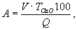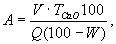 где V - объем раствора 1 н соляной кислоты, пошедшей на титрование, мл; ТСаО - титр 1 н раствора соляной кислоты, выраженный в г СаО; Q - масса навески извести, г. Содержание активных окисей кальция и магния А в процентах для гидратной извести вычисляют по формуле