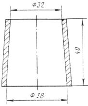 где А - содержание активных окисей кальция и магния в извести, %. Массу навески G помещают в термосную колбу, вливают 25 мл воды, имеющей температуру 20 °С, и быстро перемешивают деревянной отполированной палочкой. Колбу закрывают пробкой с плотно вставленным термометром на 100 °С и оставляют в покое. Ртутный шарик термометра должен быть полностью погружен в реагирующую смесь. Отсчет температуры реагирующей смеси ведут через каждую минуту, начиная с момента добавления воды. Определение считается законченным, если в течение 4 мин температура не повышается более чем на 1 °С. За время гашения принимают время с момента добавления воды до начала периода, когда рост температуры не превышает 0,25 °С в минуту. 2.10. Определение равномерности изменения объема извести Равномерность изменения объема извести определяется по ГОСТ 310.3-76 со следующими изменениями. Образцы-лепешки готовят из смеси извести и портландцемента по ГОСТ 10178-76. Массу навески извести 30 - 40 г затворяют водой до консистенции теста и охлаждают до температуры 25 - 30 °С, затем добавляют 30 - 40 г цемента, доливают воду и перемешивают до образования теста нормальной густоты. За нормальную густоту теста принимается такая его консистенция, при которой пестик прибора Вика, погруженный в кольцо, заполненное тестом, не доходит до пластины 7 - 11 мм. Форма и размеры кольца должны соответствовать указанным на черт. 2. Полученное тесто делят на 2 равные части для приготовления лепешек толщиной 0,7 - 0,8 см и диаметром 6 - 7 см. Черт. 2 Лепешки выдерживают в ванне с гидравлическим затвором в течение 24 ± 2 ч. Затем вместе с пластиной переносят в бачок на решетку для пропаривания, расположенную на расстоянии не менее 3 см над уровнем воды. Воду в бачке доводят до кипения, которое поддерживают в течение 2 ч. Через час производят осмотр образцов. Если обнаруживаются признаки неравномерности изменения объема, то испытание прекращают. Известь считается соответствующей требованию равномерности изменения объема, если на поверхности лепешек не обнаружится радиальных трещин, доходящих до краев, или сетки мелких трещин, а также каких-либо искривлений, увеличения объема и образования непрочной рыхлой структуры лепешек. 2.11. Коэффициент вариации К в процентах рассчитывают по результатам испытаний извести, произведенной за квартал по формуле