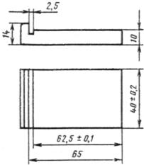 где G1 - разность в массе тигля с осадком и пустого тигля, г; G - навеска вяжущего, г. 11. ОПРЕДЕЛЕНИЕ СОДЕРЖАНИЯ МЕТАЛЛОПРИМЕСЕЙ В ВЯЖУЩЕМ11.1. Аппаратура Подковообразный постоянный магнит из сплава марки ЮН 13 ДК24 по ГОСТ 17809-72 с магнитной индукцией не менее 120 мТ (черт. 10). Черт. 10 Насадка из плексиглаза (черт. 11) для одевания на концы магнита. Черт. 11 Доска с бортиками размером 1000 ´ 500 мм с покрытием из плексиглаза или стекла. Весы по ГОСТ 23676-79 и ГОСТ 24104-80. Шпатель для смешивания и разравнивания продукта. Стекло часовое. 11.2. Проведение испытания От общей пробы берут навеску массой 1 кг, которую высыпают на доску и разравнивают шпателем слоем толщиной не более 0,5 см. Магнитом с одетой на него насадкой медленно в самой толще вяжущего проводят вдоль и поперек доски с гипсом. Частицы металлопримесей с налипшим вяжущим периодически отбирают от магнита снятием насадки и высыпают на лист белой бумаги. Выделение металлопримесей повторяют шесть раз. Перед каждым выделением испытуемое вяжущее смешивают и разравнивают тонким слоем. От налипшего вяжущего металлопримеси отделяют движением магнита по обратной стороне бумаги, на которой находится выделенный материал. После сосредоточения металлопримесей в одном месте их переносят на часовое стекло. Собранную на часовом стекле металлопримесь взвешивают на аналитических весах с погрешностью не более 0,0002 г. Содержание примесей выражают в миллиграммах на 1 кг вяжущего. 12. ОПРЕДЕЛЕНИЕ УДЕЛЬНОЙ ПОВЕРХНОСТИ12.1. Проведение испытания Сущность метода основана на измерении сопротивления воздуха через слой вяжущего установленной толщины и площади поперечного сечения в соответствии с инструкцией, прилагаемой к прибору АДП-1 (ПСХ-2). Для проведения расчетов берут величину плотности: для гипсового сырья - 2,3 г/см3; для строительного, формовочного гипса - 2,65 г/см3; для технического гипса - 2,75 г/см3. ПРИЛОЖЕНИЕСправочное ИНФОРМАЦИОННЫЕ ДАННЫЕ О СООТВЕТСТВИИ ГОСТ 23789-79 СТ СЭВ 826-77Пункт 1.1. ГОСТ 23789-79 соответствует пункту 3.1.2 СТ СЭВ 826-77. Раздел 2 ГОСТ 23789-79 соответствует разделу 3.2 СТ СЭВ 826-77. Раздел 3 ГОСТ 23789-79 соответствует разделу 3.3 СТ СЭВ 826-77. Раздел 4 ГОСТ 23789-79 соответствует разделу 3.4 СТ СЭВ 826-77. Раздел 5 ГОСТ 23789-79 соответствует разделу 3.5 СТ СЭВ 826-77. Раздел 6 ГОСТ 23789-79 соответствует разделу 3.6 СТ СЭВ 826-77.