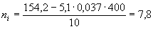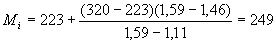 4.6 Из таблицы Б.1 для Пi = 7,8 % методом интерполяции находят: Мmах = 320, Мmin = 223, Kmах = 1,59, Kmin = 1,11 и с учетом Ki = 1,46 рассчитывают морозостойкость испытываемого бетона по формуле (4)