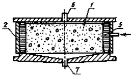 2.4.4. Результаты испытаний заносят в журнал, в котором должны быть предусмотрены следующие графы: - маркировка образцов; - возраст бетона и дата испытаний; - значение водонепроницаемости отдельных образцов и серии образцов. 3. ОПРЕДЕЛЕНИЕ ВОДОНЕПРОНИЦАЕМОСТИ ПО КОЭФФИЦИЕНТУ ФИЛЬТРАЦИИ3.1. Оборудование и материалы Для проведения испытаний применяют: установку для определения коэффициента фильтрации с максимальным испытательным давлением не менее 1,3 МПа по приложению 2; цилиндрические формы для изготовления образцов с внутренним диаметром 150 мм и высотой 150; 100; 50 и 30 мм; технические весы по ГОСТ 24104; силикагель по ГОСТ 3956. 3.2. Подготовка к испытанию 3.2.1. Изготовленные образцы хранят в камере нормального твердения при температуре (20±2) °С и относительной влажности воздуха не менее 95 %. 3.2.2. Перед испытанием образцы бетона выдерживают в помещении лаборатории до момента, пока изменение массы образца за сутки будет менее 0,1 %. 3.2.3. Перед началом испытания образцы должны быть проверены на герметизацию и дефектность путем оценки характера фильтрации инертного газа, подаваемого при избыточном давлении 0,1 - 0,3 МПа к нижнему торцу образца, на верхний торец которого налит слой воды. При удовлетворительной герметизации боковой поверхности образца в обойме и отсутствии в нем дефектов фильтрацию газа наблюдают в виде равномерно распределенных пузырьков, проходящих через слой воды. При неудовлетворительной герметизации боковой поверхности образцов в обойме или при наличии в образцах крупных дефектов фильтрацию газа наблюдают в виде обильного местного выделения в дефектных местах. Дефекты герметизации боковой поверхности устраняют повторной герметизацией образцов. При наличии в образце отдельных крупных фильтрующих каналов образцы бетона заменяют. 3.2.4. Образцы, выбуренные из конструкции диаметром не менее 50 мм, после герметизации их боковых поверхностей подвергают испытаниям независимо от наличия в них дефектов. 3.2.5. Вода по ГОСТ 23732, применяемая для испытаний, должна быть предварительно дезаэрирована путем кипячения не менее 1 ч. Температура воды в период испытаний (20±5) °С. 3.3. Проведение испытаний 3.3.1. В установке одновременно испытывают шесть образцов. 3.3.2. Подъем давления дезаэрированной воды производят ступенями по 0,2 МПа в течение 1 - 5 мин с выдержкой в течение 1 ч на каждой ступени до давления, при котором появляются признаки фильтрации в виде отдельных капель. 3.3.3. Воду (фильтрат), прошедшую через образец, собирают в приемный сосуд. 3.3.4. Измерение веса фильтрата производят через каждые 30 мин и не менее шести раз на каждом образце. 3.3.5. При отсутствии фильтрата в виде капель в течение 96 ч количество влаги, проходящее через образец, измеряют путем поглощения ее силикагелем или другим сорбентом в соответствии с п. 3.3.4. Силикагель должен быть предварительно высушен и помещен в закрытый сосуд, который герметически присоединяют к патрубку для сбора фильтрата в приемный сосуд. 3.3.6. Допускается оценивать коэффициент фильтрации бетона ускоренным методом, приведенным в приложении 3. 3.4. Обработка результатов 3.4.1. Вес фильтрата отдельного образца Q, Н, принимают как среднее арифметическое четырех наибольших значений. 3.4.2. Коэффициент фильтрации Кф, см/с, отдельного образца определяют по формуле Кф = где Q - вес фильтрата, Н; d - толщина образца, см; S - пло