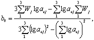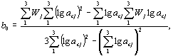 7. Проверка возможности использования табл. 7 и установление градуировочной зависимости 7.1. Проверку осуществляют в последовательности: по пп. 2.2, 5.1, 5.2 настоящего приложения изготавливают и испытывают одну серию образцов из бетона одного из контролируемых составов; определяют значение аc (mc) для этой серии образцов и соответствующую ему по табл. 7 марку бетона по водонепроницаемости; эту же серию образцов испытывают по разд. 2 настоящего стандарта и определяют марку бетона по водонепроницаемости «по мокрому пятну». 7.2. Табл. 7 можно использовать, если значение марки бетона по водонепроницаемости W отличается от полученного по таблице не более чем на одну марку. 7.3. Если требование п. 7.2 не выполняется (табл. 7 использовать невозможно), для определения марки бетона по водонепроницаемости используют градуировочную зависимость «аc - W» или «mc - W»: где b0 и b1 - коэффициенты, определяемые по пп. 7.4, 7.5. 7.4. Коэффициенты b0 и b1 определяют по результатам испытаний серии образцов в соответствии с п. 7.1 и двух дополнительных серий образцов, также изготовленных и испытанных по п. 7.1. При изготовлении образцов одной из указанных серий следует использовать бетонную смесь с водоцементным отношением 0,40 - 0,42, другой - 0,52 - 0,54. Соотношения между заполнителями и между цементом и добавками в этих бетонных смесях должны быть такими же, как и в контролируемом составе. 7.5. Коэффициент b0 и b1 рассчитывают по формулам: где acj - значение ac или тс для отдельных серий образцов (ас1, ас2, ас3 или тс1, тс2, тс3); Wj - значения W для отдельных серий (W1, W2, W3) марки бетона по водонепроницаемости. 8. Промер установления и использования градуировочной зависимости 8.1. Для установления градуировочной зависимости на заводе ЖБИ по п. 7.1 были изготовлены и испытаны основная (О) и две дополнительные серии (1Д, 2Д) бетонных образцов. Результаты испытаний приведены во 2-й и 3-й графах табл. 8. При дальнейшем контроле качества бетонов различных составов, приготовленных из тех же материалов, что и образцы указанных серий, были изготовлены и по пп. 5.1 и 5.2 испытаны еще три серии образцов (3, 4, 5), средние значения параметра воздухопроницаемости которых указаны во 2-й графе табл. 9. Определить марку бетона по водонепроницаемости для каждой из этих серий. 8.2. Последовательность обработки данных для нахождения коэффициентов b0 и b1 приведена в табл. 8. Таблица 8