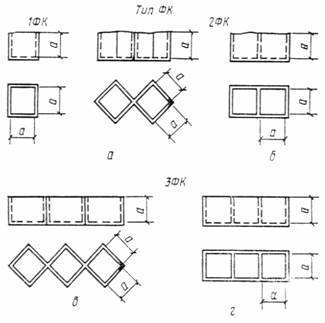Дата введения 01.01.90 Настоящий стандарт распространяется на формы, предназначенные для изготовления контрольных образцов (далее - образцов) из бетонов всех видов. 1. ТЕХНИЧЕСКИЕ ТРЕБОВАНИЯ1.1. Формы должны изготовляться в соответствии с требованиями настоящего стандарта и технологической документации по рабочим чертежам, утвержденным в установленном порядке. 1.2. Основные параметры и размеры 1.2.1. Формы подразделяют на типы: ФК - Для изготовления образцов в виде куба (черт. 1); ФП - для изготовления образцов в виде призмы (балочки) (черт. 2); ФЦ - для изготовления образцов в виде цилиндра (черт. 3). 1.2.2. Форма типа ФК изготовляют одно- и двухместными. Варианты двухместных форм (а, б) приведены на черт. 1. Примечание. Допускается выпускать трехместные формы типа ФК для кубов с длиной ребра 100 мм, при этом в каждой ячейке формы должно быть, как правило, одинаковое число граней, соприкасающихся с внешней средой. Вариант такого исполнения формы приведен на черт. 1в. 1.2.3. Условное обозначение (марки) формы состоит из буквенно-цифровых групп, разделенных дефисом. Первая группа содержит обозначение типа формы. Вторая группа, выраженная цифрами, обозначает длину ребра куба, основания призмы или диаметр цилиндра в миллиметрах.