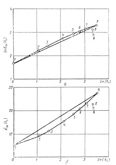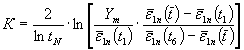 значениям относительных деформаций ползучести 5. При отсутствии аномальных результатов измерений вычисляют значения параметров К, Ym и а по формулам: