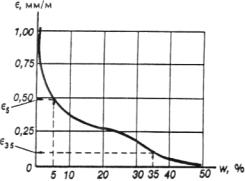 5.3. По черт. 2 определяют усадку при высыхании образца от влажности ei, мм/м, в интервале от 35 до 5 % по массе по формуле