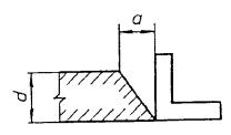 ПРИЛОЖЕНИЕ Б(рекомендуемое) МЕТОДЫ КОНТРОЛЯ ПРАВИЛЬНОСТИ ГЕОМЕТРИЧЕСКОЙ ФОРМЫ МИНЕРАЛОВАТНЫХ И СТЕКЛОВАТНЫХ МАТОВ И ПЛИТ В СООТВЕТСТВИИ С ИСО 8144 И ИСО 8145 Б.1 Методы распространяются на теплоизоляционные маты и плиты из минеральной и стеклянной ваты на синтетическом связующем. Б.2 Общие требования — в соответствии с разделом 3. Б.3 Инструменты Линейка деревянная, длина которой больше длины плиты не менее чем на 150 мм. Линейка металлическая с ценой деления 1 мм по ГОСТ 427. Рулетка металлическая с ценой деления 1 мм по ГОСТ 7502. Угольник поверочный типа УП с Н = 160 мм по ГОСТ 3749. Угольник поверочный типа УШ с Н = 630 мм по ГОСТ 3749. Два одинаковых деревянных бруска длиной (100±1) мм, шириной (25±0,5) мм, толщиной (25±0,5) мм Б.4 Предел допускаемой погрешности измерения линейкой и рулеткой — ±0,5 мм Б.5 Измерение отклонения от прямоугольности по ширине матов, плит Б.5.1 Измерение отклонения от прямоугольности проводят для матов, длина которых менее 3 м, и плит. Сущность метода заключается в измерении отклонения углов, образуемых боковыми гранями мата, плиты, от прямого угла. Б.5.2 Мат, плиту кладут на плоскую горизонтальную твердую поверхность. Поверочный угольник кладут на эту поверхность так, чтобы одна из его сторон была направлена вдоль длинной грани мата, плиты, а другая сторона угольника — вдоль смежной с ней короткой грани этого изделия (рисунок Б.1). Измеряют расстояние а между кромкой угольника и короткой гранью мата, плиты в том месте, где оно максимально. Б.5.3 Повторяют измерение на противоположной короткой грани мата, плиты.