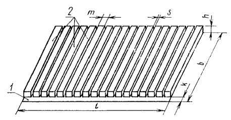 Дата введения с 01.07.79 Настоящий стандарт распространяется на теплоизоляционные минераловатные вертикально-слоистые маты, состоящие из полос, нарезанных из минераловатных плит и наклеенных на защитно-покровный материал в положении, при котором слои минеральной ваты располагаются перпендикулярно защитно-покровному материалу. Теплоизоляционные вертикально-слоистые маты предназначаются для тепловой изоляции трубопроводов диаметром свыше 108 мм и аппаратов при температуре изолируемых поверхностей от минус 120 до плюс 300°С. 1. МАРКИ И РАЗМЕРЫ1.1. Маты в зависимости от плотности (объемной массы) подразделяются на марки 75 и 125. (Измененная редакция, Изм. № 1). 1.2. Размеры матов должны соответствовать приведенным в табл. 1 и на чертеже. 1.3. Условное обозначение мата должно состоять из его сокращенного наименования, марки мата, марки покровного материала, указанной в стандартах или технических условиях, размеров по длине, ширине и толщине мата в миллиметрах, разделяемых точками, и номера настоящего стандарта. Пример условного обозначения мата марки 75 на стеклорубероиде марки С-РК, длиной 3000 мм, шириной 1000 мм и толщиной 60 мм: МВС-75-С-РК-3000.1000.60 ГОСТ 23307-78