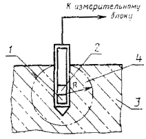Дата введения 01.01.88 Несоблюдение стандарта преследуется по закону Настоящий стандарт распространяется на песок, щебень, гравий и гравийно-песчаную смесь, применяемые в качестве заполнителей бетона (далее - сыпучие материалы), бетонную и растворную смеси, а также бетоны на плотных заполнителях (далее - бетоны) и устанавливает методики измерения объемной или массовой влажности (далее - влажности) нейтронным методом. Нейтронный метод применяют преимущественно для автоматизированного измерения влажности сыпучих материалов, а также для экспрессного измерения влажности бетонных и растворных смесей и бетонов. Нейтронный метод измерения влажности основан на эффекте замедления быстрых нейтронов в процессе их взаимодействия с ядрами атомов водорода воды, содержащейся в материале. Число медленных нейтронов, регистрируемых влагомерами, характеризует объемную влажность контролируемого материала. Массовую влажность контролируемого материала находят по отношению значения объемной влажности этого материала к его средней плотности, определенной по ГОСТ 12730.1-78. 1. СРЕДСТВА ИЗМЕРЕНИЙ1.1. Измерение влажности сыпучих материалов и бетонов следует проводить при помощи влагомеров по ГОСТ 21196-75 или влагомеров-плотномеров по ГОСТ 25932-83, отградуированных заводом-изготовителем в значениях объемной или массовой влажности. 1.3. Допускается применять для измерения влажности сыпучих материалов другие средства измерений, соответствующие требованиям настоящего стандарта (п. 1.2) и отградуированные по методике, приведенной в приложении 1. 1.4. При проведении измерений должны соблюдаться действующие санитарные правила работы с радиоактивными веществами и другими источниками ионизирующих излучений, утвержденные Минздравом СССР. 1.5. Влажность сыпучих материалов, бетонных и растворных смесей измеряют преимущественно влагомерами с измерительными преобразователями зондового типа в соответствии с черт. 1, черт. 2. Для измерения влажности при одностороннем доступе к контролируемому материалу применяют влагомеры с измерительными преобразователями поверхностного типа в соответствии с черт. 3, черт. 4. 2. ПОДГОТОВКА И ПРОВЕДЕНИЕ ИЗМЕРЕНИЙ2.1. При измерении влажности сыпучих материалов, бетонных и растворных смесей в бункерах измерительный преобразователь зондового типа помещают в обсадную трубу, установленную внутри бункера в соответствии с черт. 2, а измерительный преобразователь поверхностного типа устанавливают на вертикальной стене в соответствии с черт. 4. 2.2. Число и расположение участков, на которых должна определяться влажность бетонов в конструкциях, устанавливают нормативно-технической документацией или рабочими чертежами на конструкцию. При отсутствии указанных данных число и расположение участков контроля влажности устанавливается предприятием - изготовителем конструкции по согласованию с проектной или научно-исследовательской организацией. 2.3. При установке измерительных преобразователей должны быть выполнены следующие условия: 1) преобразователи зондового типа следует устанавливать так, чтобы зона рассеяния нейтронов, соответствующая сфере радиусом R, находилась внутри контролируемого материала согласно черт. 1, черт. 2. 2) преобразователи поверхностного типа следует устанавливать так, чтобы зона рассеяния нейтронов, соотве
