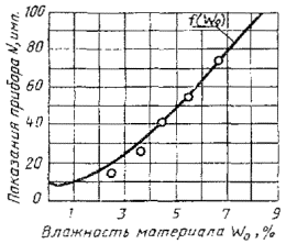 Наименьшее расстояние от поверхности сыпучих материалов или бетонной или растворной смеси в бункере до измерительного преобразователя должно быть не менее R при соответствующей влажности. 3. ОБРАБОТКА РЕЗУЛЬТАТОВ3.1. Значение влажности определяют по показаниям влагомера и (или) градуировочной зависимости, представленной в виде графика, таблицы или формулы с округлением до 0,1 абс. %. Пример градуировочной зависимости, представленной в виде графика, приведен на черт. 5 (приложение 1). 3.2. Значение массовой влажности Wm, %, вычисляют по формуле