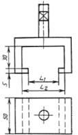 Черт. 4 2.4. Захваты в виде скобы (черт. 5) для передачи растягивающего усилия образцу от испытательной машины с самоцентрирующим устройством типа "карданный шарнир", обеспечивающим направление действия нагрузки перпендикулярно к плоскости образца. 2.5. Допускается применение других типов колодок с размерами контактируемой поверхности (50х50) мм, а также захватов и приспособлений для центрирования, обеспечивающих заданное центрирование образцов при склеивании и испытании согласно п.п. 3.2 и 4.1. мм