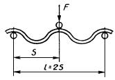Дата введения 01.07.89 Несоблюдение стандарта преследуется по закону Настоящий стандарт распространяется на асбестоцементные листовые изделия и устанавливает методы их испытаний с целью контроля следующих показателей: внешнего вида; линейных размеров и формы; предела прочности при изгибе; несущей способности волнистых листов; прочности волнистых листов при планочной нагрузке; прочности при сосредоточенной нагрузке от штампа; ударной вязкости; плотности; водопоглощения; водонепроницаемости; морозостойкости; прочности цветного покрытия на истирание. Применение методов предусматривается в стандартах или технических условиях на конкретные изделия. 1. Общие положения1.1. Число изделий, отбираемых для контроля, устанавливают в стандартах или технических условиях на конкретные изделия. 1.2. Для проведения испытаний следует использовать водопроводную воду, температура которой должна быть (20 ± 5) °С. 1.3. Размеры, указанные на чертежах настоящего стандарта без предельных отклонений должны быть выдержаны с погрешностью не более 1 %. 2. Контроль внешнего вида2.1. Внешний вид листовых изделий проверяют визуально. Неровности поверхности (выпуклости, углубления) измеряют штангенциркулем по ГОСТ 166-80, а измерения других дефектов, в случае необходимости, производят штангенциркулем, рулеткой по ГОСТ 7502-80 или линейкой по ГОСТ 427-75 с ценой деления не более 1 мм. Сдиры измеряют по прямой в направлении из наибольшей протяженности. Размеры выщербин измеряют вдоль и поперек изделия. Размеры выщербин в направлении ширины листа с одной торцевой стороны суммируют. Длину поверхностного разрыва измеряют вдоль образующей волны; ширину - поперек разрыва. 2.2 Внешний вид листовых изделий с поверхностной отделкой (цвет, интенсивность и равномерность окраски, рисунок, характер отделки и др.) проверяют визуально сравнением с утвержденным эталоном на расстоянии 10 м. 2.3. Соответствие маркировки требованиям стандартов или технических условий проверяют визуально. Маркировку считают соответствующей требованиям, если она включает всю информацию, предусмотренную нормативно-технической документацией на конкретное изделие и при этом исключена возможность оспорить ее содержание. 3. Контроль размеров и формы3.1. Средства контроля Рулетка металлическая с ценой деления не более 1 мм по ГОСТ 7502-80. Штангенглубиномер по ГОСТ 162-80. Штангенциркуль по ГОСТ 166-80. Толщиномер по ГОСТ 11358-74. Стенкомер по ГОСТ 11951-82. Щупы по ГОСТ 882-75. Угольники по ГОСТ 3749-77. Линейка по ГОСТ 427-75. Допускается применять нестандартизованные средства измерений, прошедшие метрологическую аттестацию в соответствии с ГОСТ 8.326-78. Погрешность средств измерений не должна быть более: ±0,1 мм - при измерении толщины изделия, ±1,0 мм - при измерении других линейных размеров и значений отклонения изделий от заданной формы. 3.2. Проведение контроля Контроль следует проводить на столе, длина которого должна быть не менее длины контролируемого изделия, а ширина - превышать ширину изделия не менее чем на 300 мм. При всех измерениях (кроме контроля толщины) и вычислениях среднего арифметического значения получаемые результаты следует округлять до 1 мм, при контроле толщины - до 0,1 мм. 3.2.1. Длину волнистых листов измеряют рулеткой вдоль обоих крайних гребней (черт. 1), длину плоских листов - рулеткой вдоль обеих продольных сторо