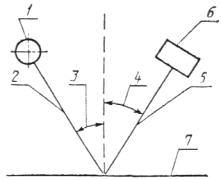 1 - источник света; 2 - ось светового пучка, падающего на образец; 3 - угол падения; 4 - угол отражения; 5 - ось светового пучка, отраженного от образца; 6 - фотоприемник; 7 - плоскость измерений Рисунок А.1 Ключевые слова: стекло, стекло строительное, коэффициент направленного пропускания света, коэффициент направленного отражения света, метод определения СОДЕРЖАНИЕ