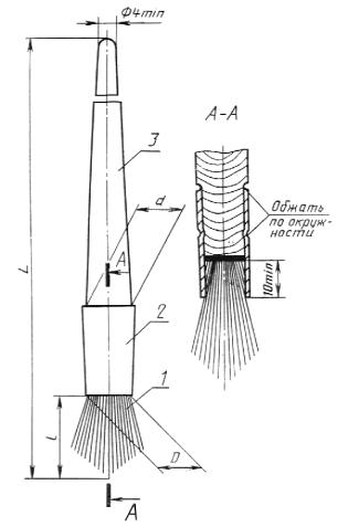 * Размер для справок. 1 - пучок; 2 - колодка; 3 - ручка Черт. 6 Примечание. Исполнение донной части кисти аналогично указанному на черт. 1 приложения 1. Исполнение 2 (Остальное - см. исполнение 1)