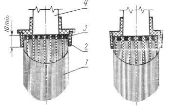 1 - пучок; 2 - держатель; 3 - колодка; 4 - шуруп Черт. 7 Таблица 4 Размеры в мм